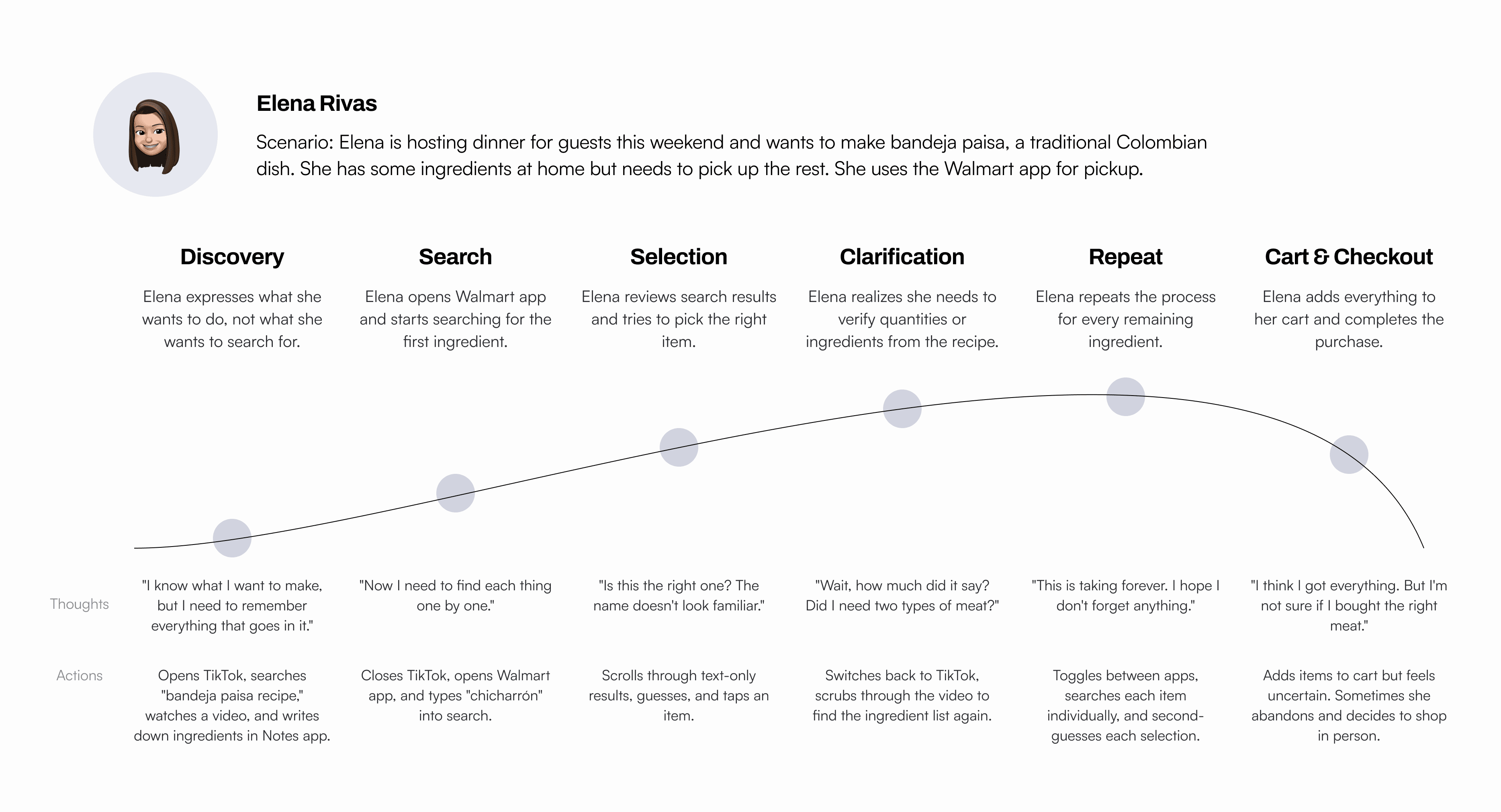 People know what they want to do like cook a dinner or find a birthday gift, but the Walmart app only knows how to search for product names. This creates a fragmented experience that adds friction, creates uncertainty, and often leads to abandoned carts or incorrect purchases.